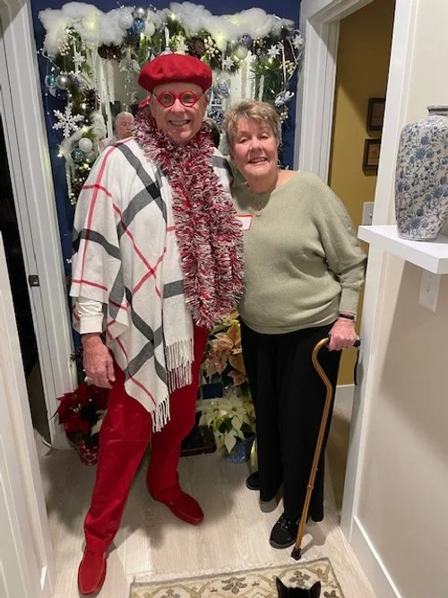 Ron and Faye at Ron and Joe’s Christmas Cookie Exchange and carol sing-a-long party. December, 2023