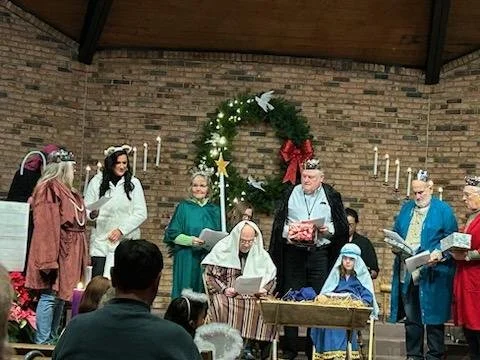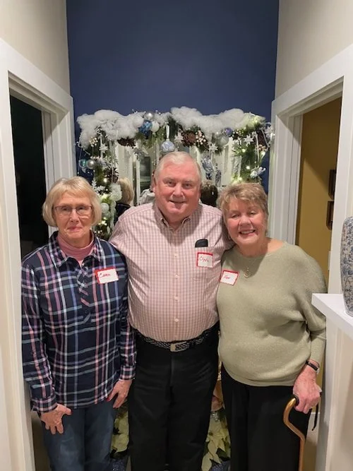 Carol, Clyde and Faye at Ron and Joe’s Christmas Cookie Exchange and carol sing-a-long party. December, 2023